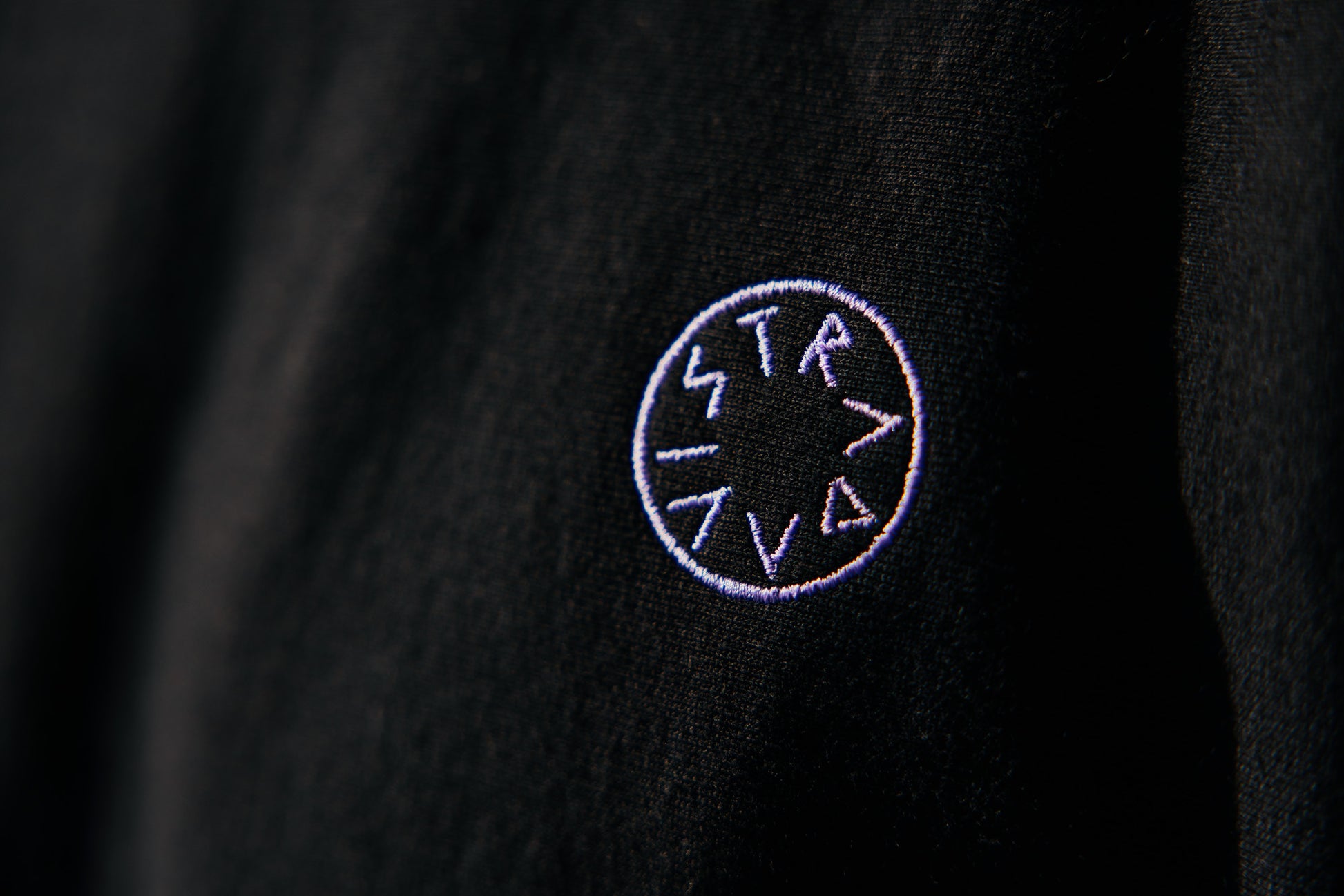 Black crewneck with 1.5" Radavist Rune embroidered in lilac.