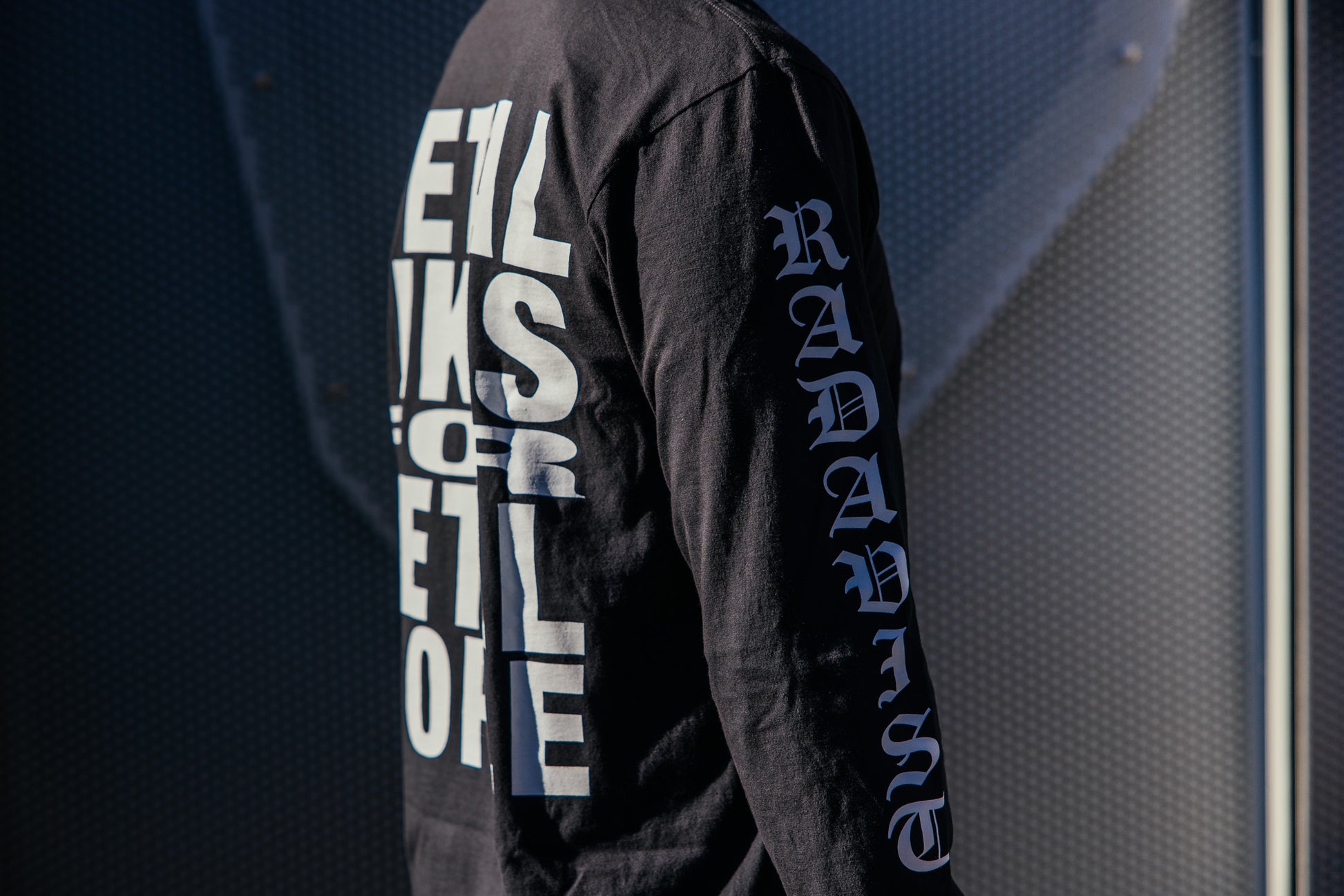 These Comfort Colors long sleeve t-shirts feature a full back screenprint of Metal Bikes for Metal People and Radavist is printed in an Old English-style font down the sleeves.